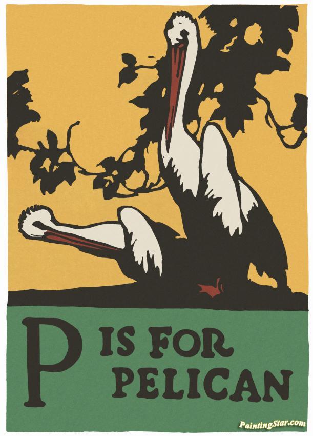 Alphabet - P Is For Pelican, Art Painting by C.b. Falls