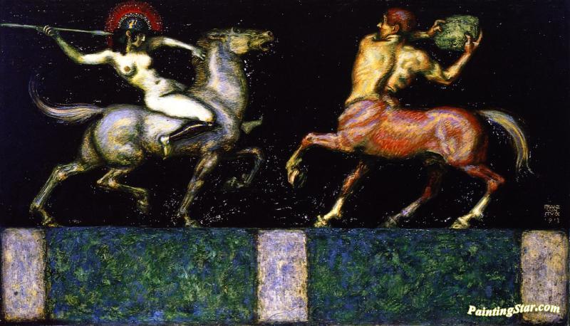 Amazon And Centaur, Art Painting by Franz von Stuck