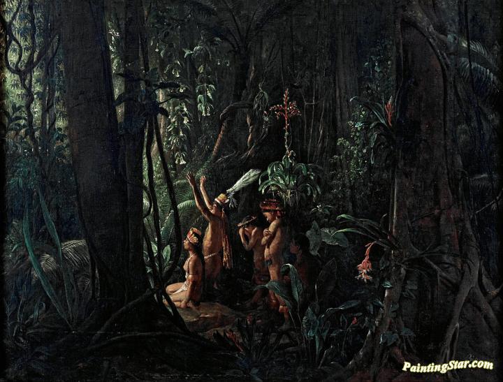 Amazonian Indians Worshiping The Sun God, Art Painting by Francois-Auguste Biard