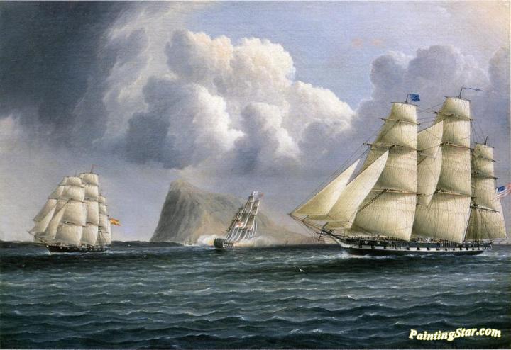 American Frigate Off Gibralter Flying A Commodore's Pennant, Art Painting by James E. Buttersworth