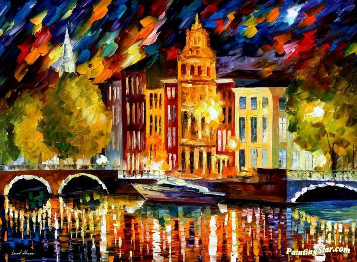 Amsterdam, Autumn Reflections, Art Painting by Leonid Afremov