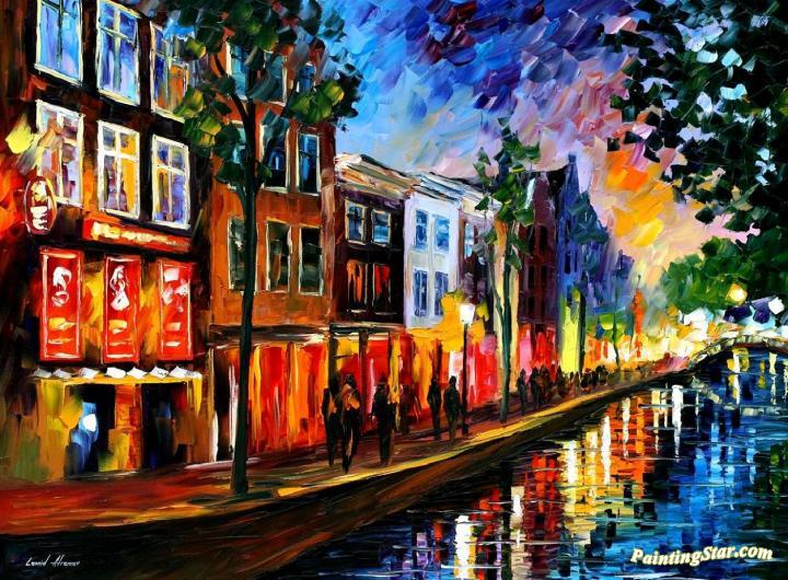 Amsterdam, Red Lights, Art Painting by Leonid Afremov
