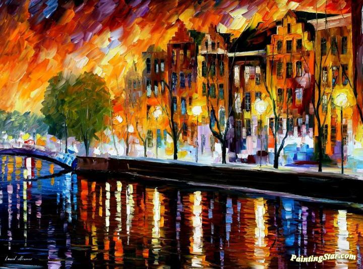 Amsterdam, Winter Reflection, Art Painting by Leonid Afremov