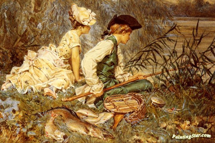 An Afternoon Of Fishing, Art Painting by Frederik Henrdik Kaemmerer