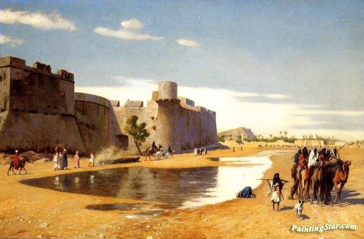 An Arab Caravan outside a Fortified Town, Egypt, Art Painting by Jean Leon Gerome