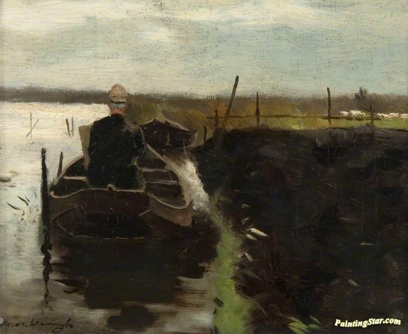 An Artist Sketching From A Boat, Art Painting by Johan Hendrik Weissenbruch
