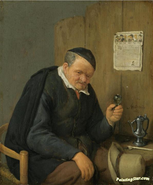 An Elderly Man Seated Holding a Wineglass, Art Painting by Adriaen van Ostade