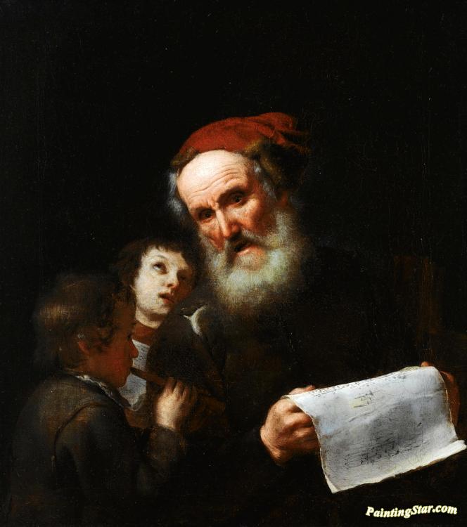 An Elderly Man Singing Together With Two Young Boys, Art Painting by Michael Sweerts
