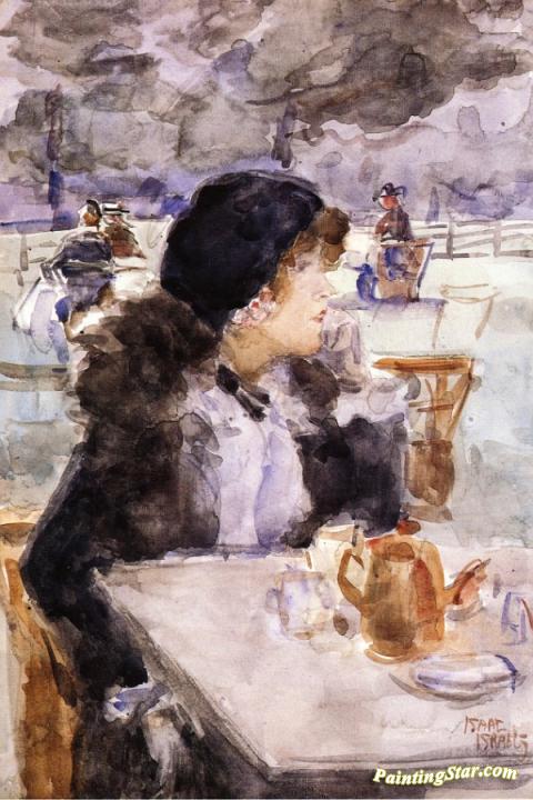An Elegant Beauty Having Tea in Hyde Park, Art Painting by Isaac Israels