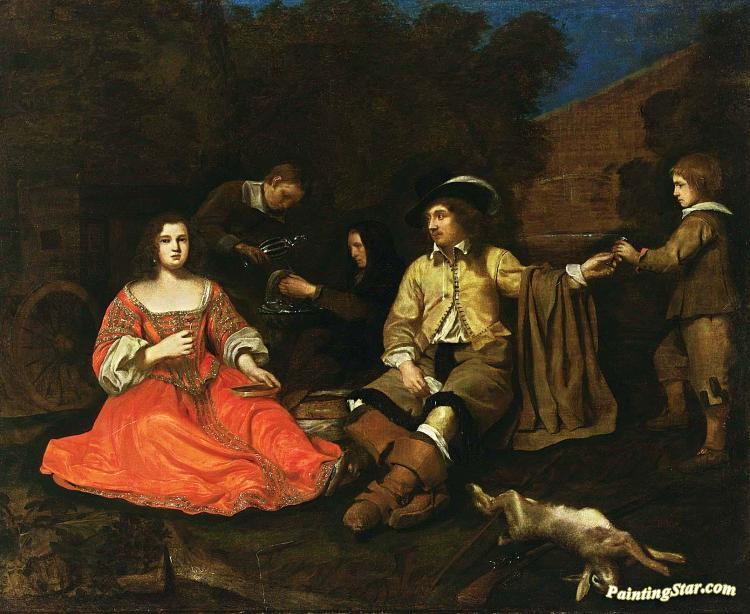 An Elegant Hunting Company Resting, Art Painting by Michael Sweerts