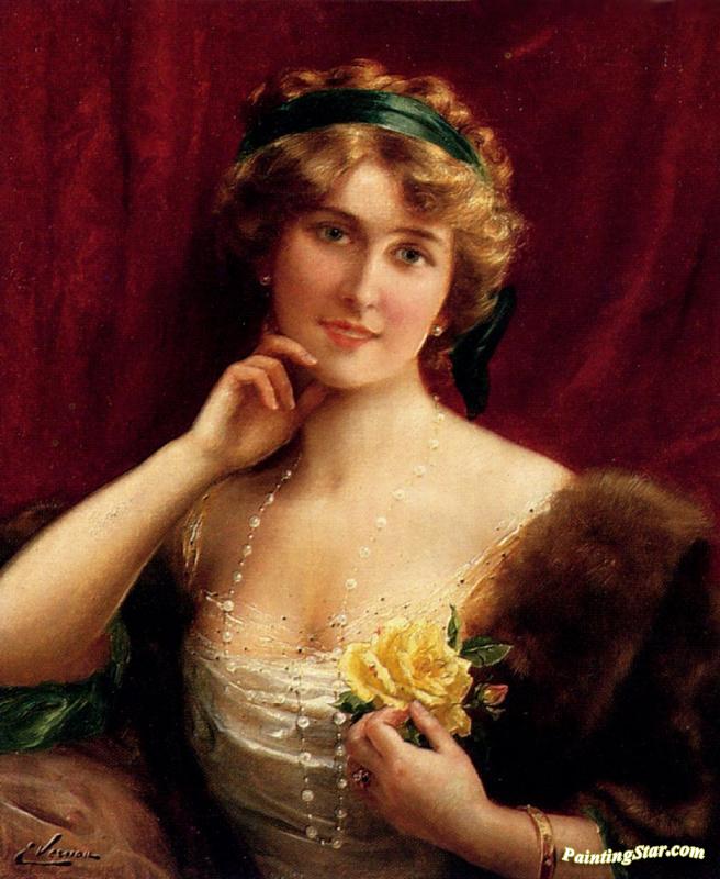 An Elegant Lady With A Yellow Rose, Art Painting by Emile Vernon