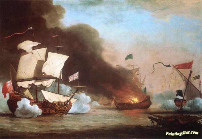 An English Ship In Action With Barbary Pirates, Art Painting by Willem van de Velde the Younger