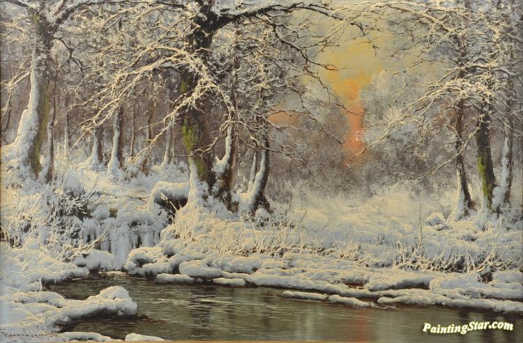 An Evening In Winter With Stream, Art Painting by Laszlo Neogrady