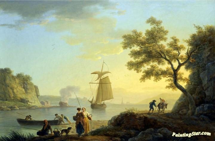 An Extensive Coastal Landscape with Fishermen Unloading their Boats, Art Painting by Claude-Joseph Vernet