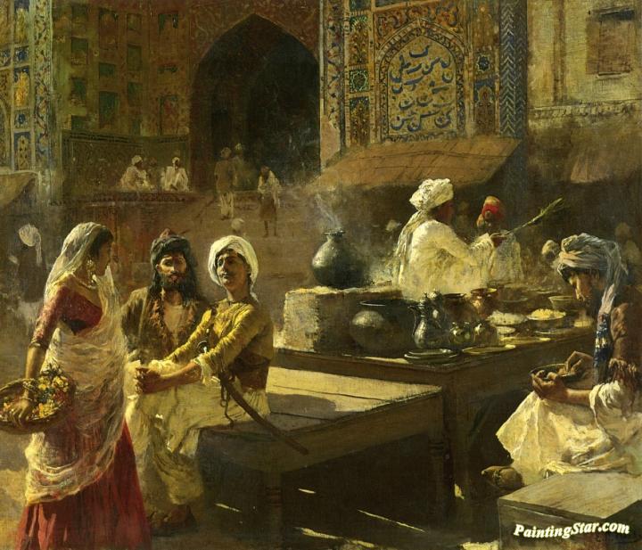 An Open-air Kitchen, Lahore, India, Art Painting by Edwin Lord Weeks
