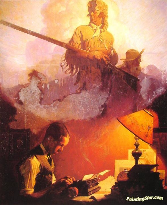 And Daniel Boone Comes to Life on the Underwood Portable, Art Painting by Norman Rockwell