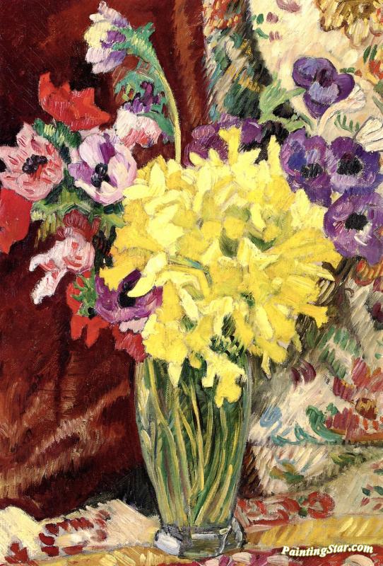 Anemones And Jonquils In A Crystal Vase, Art Painting by Louis Valtat