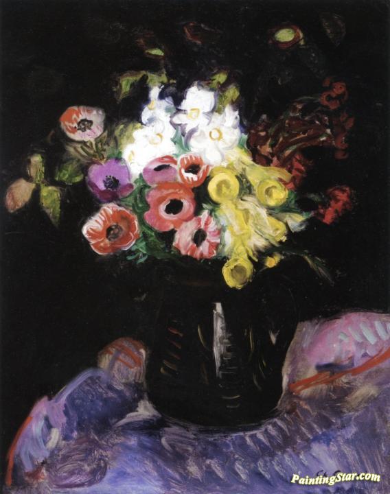 Anemones in a Black Vase, Art Painting by Charles Camoin