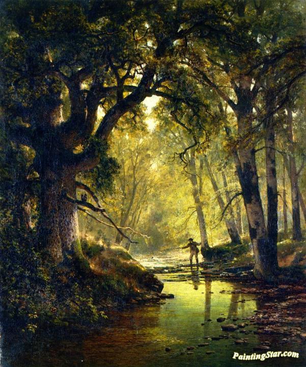 Angler In A Forest Interior, Art Painting by Thomas Hill