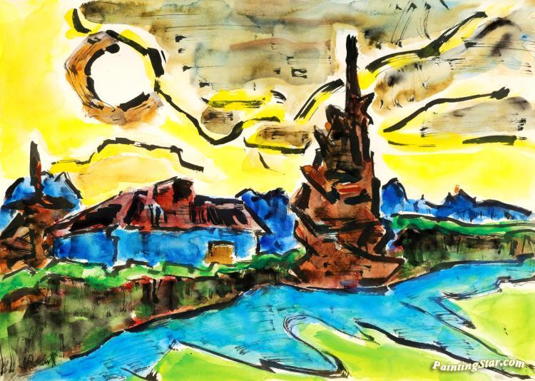 Animated Autumn Landscape (bewegte Herbstlandschaft), Art Painting by Karl Schmidt Rottluff
