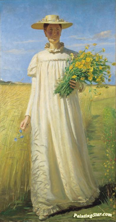 Anna Ancher returning from the field, Art Painting by Michael Peter Ancher
