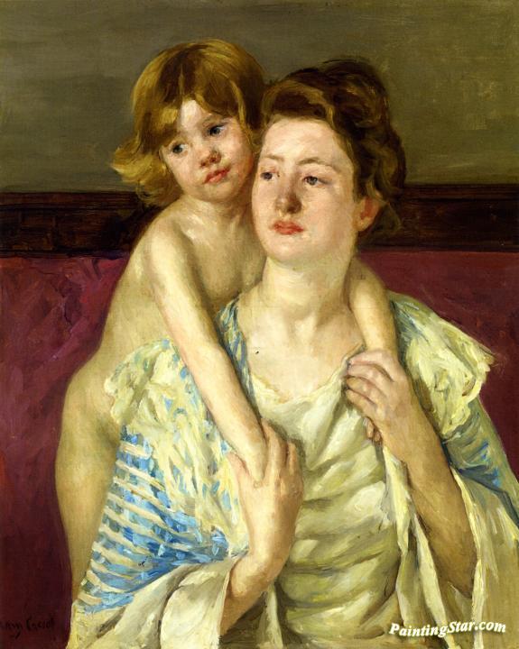 Antoinette Holding Her Child by Both Hands, Art Painting by Mary Cassatt