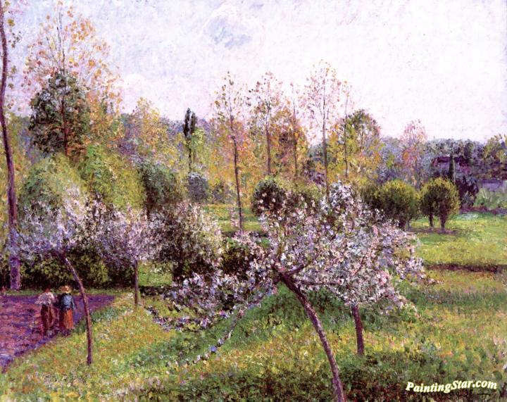 Apple Trees In Flower, Eragny, Art Painting by Camille Pissarro