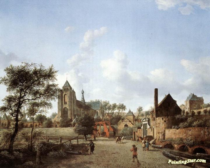 Approach To The Town Of Veere, Art Painting by Jan van der Heyden