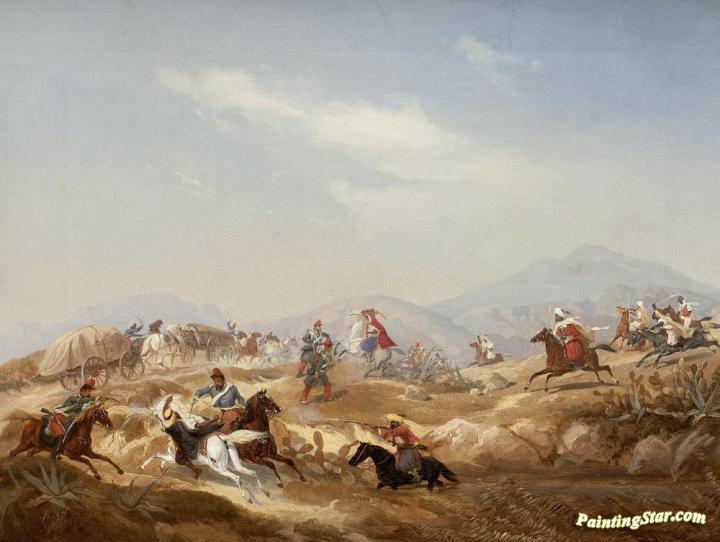 Arab Raiding Party Attacking A Convoy, Art Painting by Niels Simonsen
