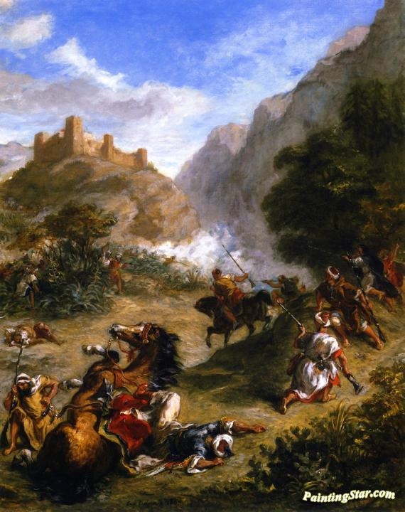 Arabs Skirmishing in the Mountains, Art Painting by Eugène Delacroix