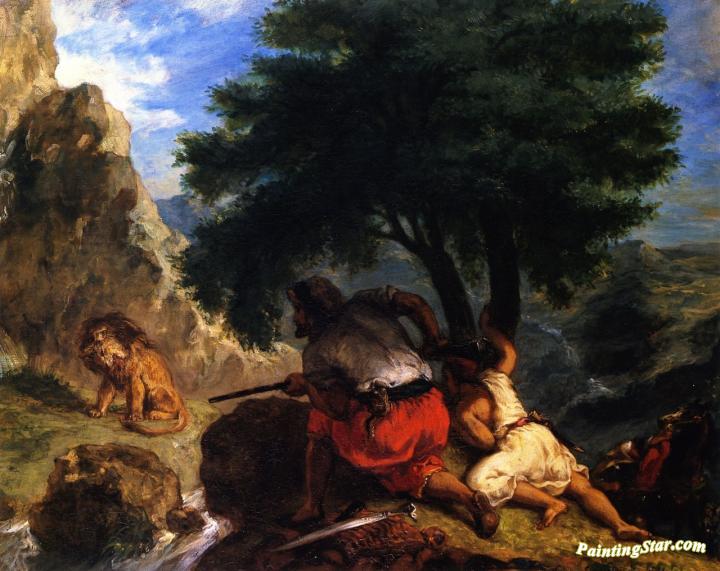 Arabs Stalking A Lion, Art Painting by Eugène Delacroix