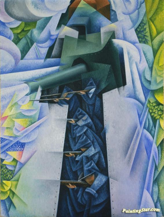 Armored Train In Action, 1915, Art Painting by Gino Severini