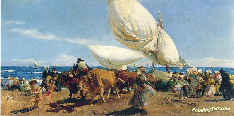 Arrival Of The Fishing Boats On The Beach, Valencia, Art Painting by Joaquin Sorolla y Bastida