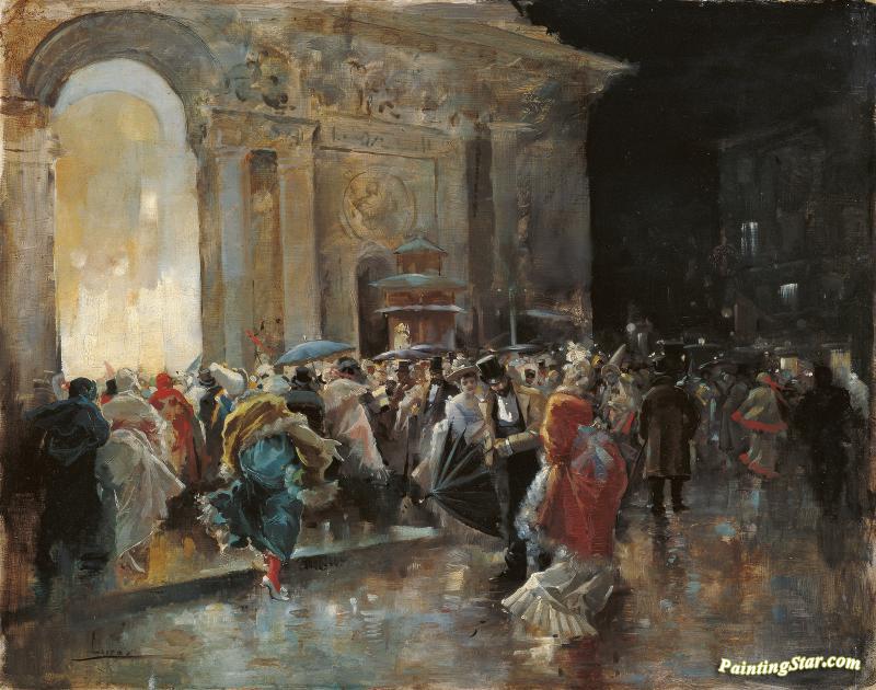 Arriving At The Theatre On A Night Of A Masked Ball, Art Painting by Eugenio Lucas Villamil