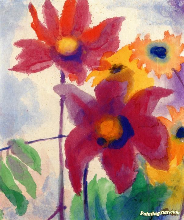 Asters and Small Sunflowers, Art Painting by Emil Nolde