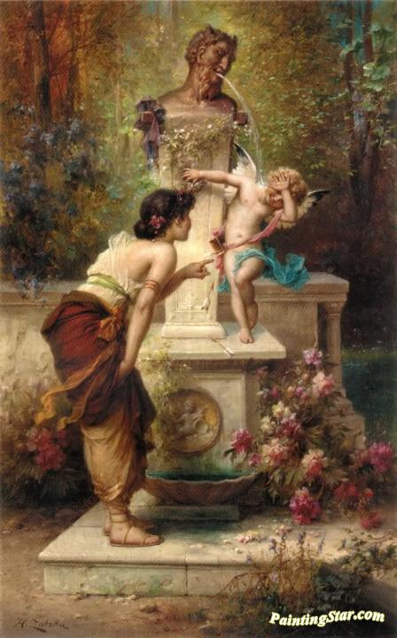 At Cupid's Fountain, Art Painting by Hans Zatzka