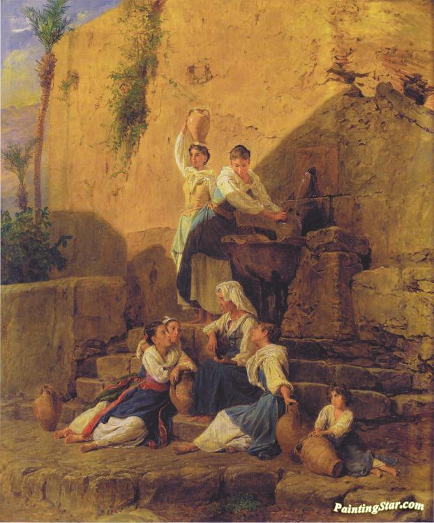 At The Fountain In Taormina,1846, Art Painting by Ferdinand Georg Waldmuller