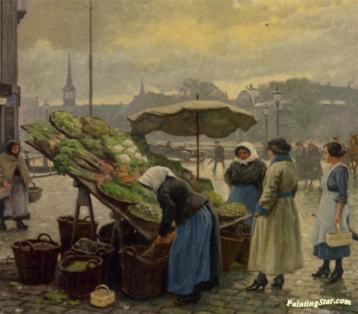 At the Vegetable Market, Art Painting by Paul Gustave Fischer