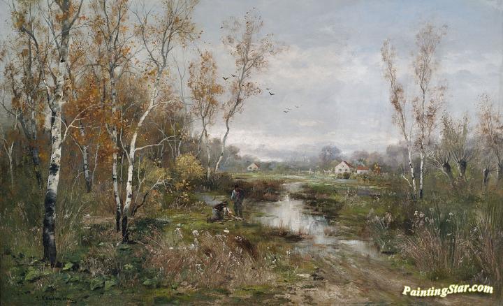 Autumn Landscape With A Birch Grove, Art Painting by Adolf Kaufmann