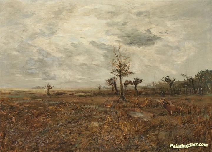 Autumn Landscape with Deer, Art Painting by Christian Johann Kroner