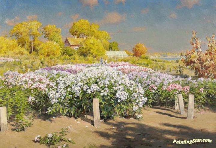 Autumn landscape with phloxes, Art Painting by Johan Krouthén