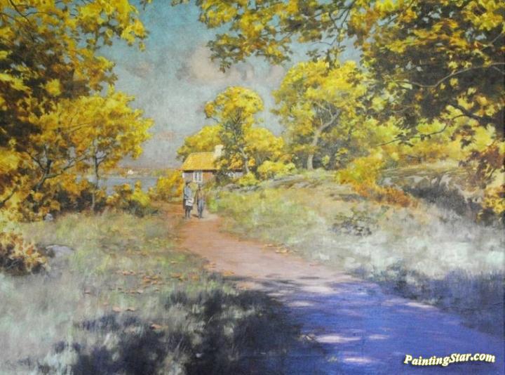 Autumn Road with Children, Art Painting by Johan Krouthén