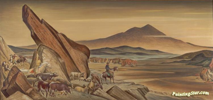 Autumn Roundup, 1945, Art Painting by Frank Mechau