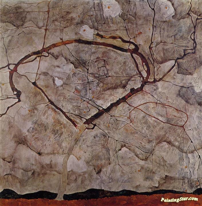 Autumn Tree in Movement, Art Painting by Egon Schiele