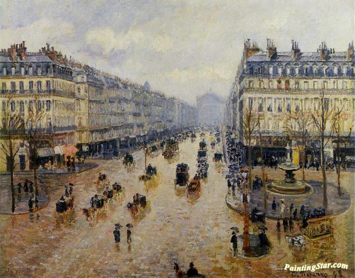 Avenue De L'opera: Rain Effect, Art Painting by Camille Pissarro