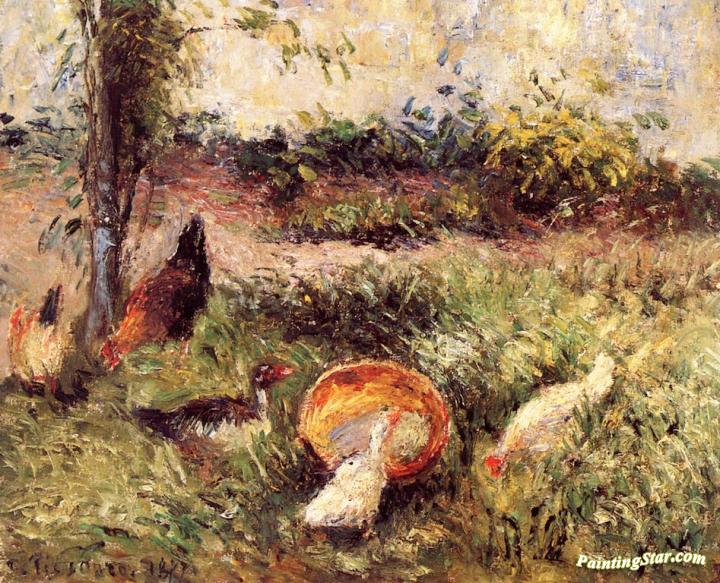 Back Yard with Chickens and Turkeys, Art Painting by Camille Pissarro