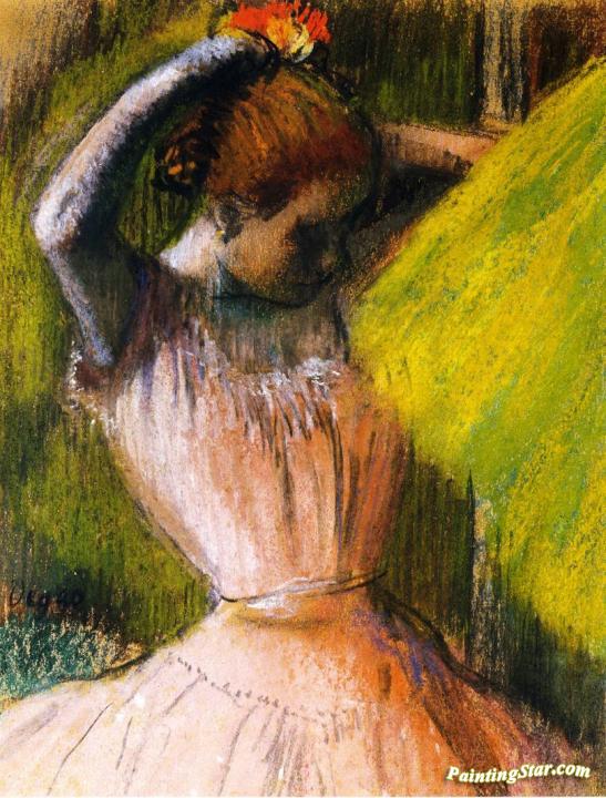 Ballet Corps Member Fixing Her Hair, Art Painting by Edgar Degas