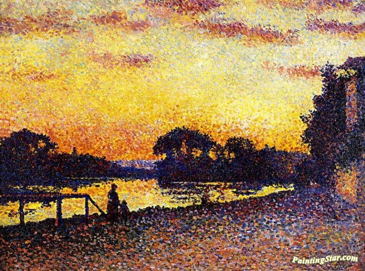 Banks of the Seine at Herblay, Sunset, Art Painting by Maximilien Luce