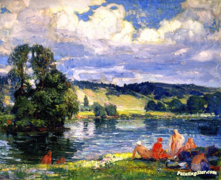 Bathers Along The Seine, Vernon, France, Art Painting by Joseph Kleitsch
