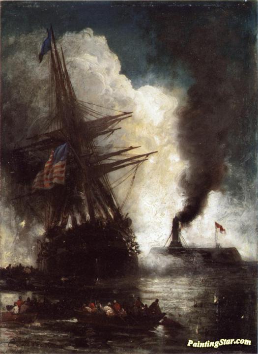 Battle Between Ironclad, Merrimac and Chesapeake, Art Painting by Edward Moran
